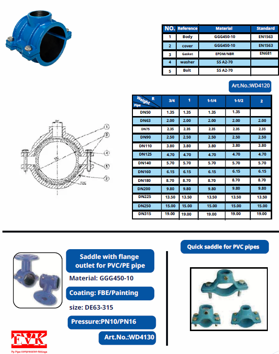 Be the first to review “Ductile iron saddle for PVC / PE Pipe”